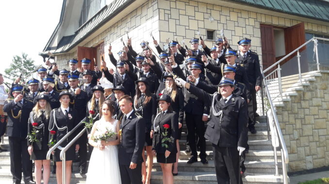 Nie od dziś wiadomo, że na druhów z Ochotniczej Straży Pożarnej zawsze można liczyć. I to nie tylko kiedy się pali, wichury łamią drzewa czy deszcze zalewają posesje. Strażacy nie tylko pomagają innym, ale są wsparciem również dla siebie wzajemnie. Przekonał się o tym druh Mateusz, który w sobotę 24 lipca mógł liczyć na swoich kolegów w swoim wyjątkowym dniu. Jego koledzy druhowie towarzyszyli mu w dniu ślubu eskortując go do wybranki serca oraz tworząc widowiskowy szpaler reprezentacyjny. Życzymy Mateuszowi wszystkiego najlepszego na nowej drodze życia.