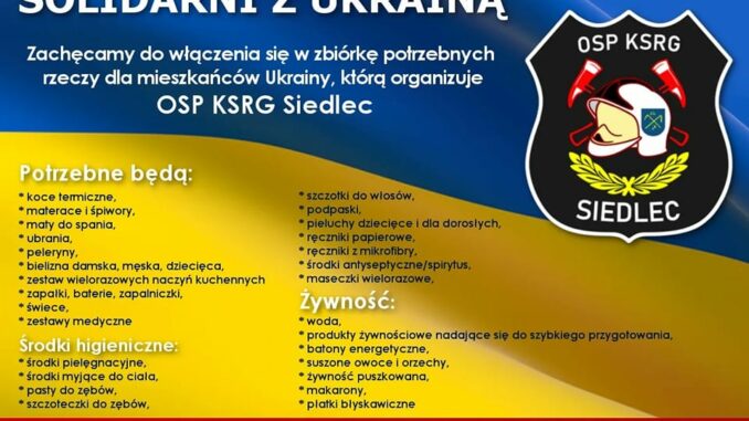 Druhowie Ochotniczej Straży Pożarnej w Siedlcu włączają się w pomoc uchodźcom z Ukrainy.