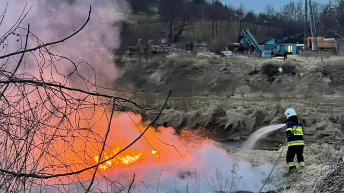 Drugie zgłoszenie jakie otrzymaliśmy od SKKP w Bochni dotyczyło pożaru traw w miejscowości Moszczenica.