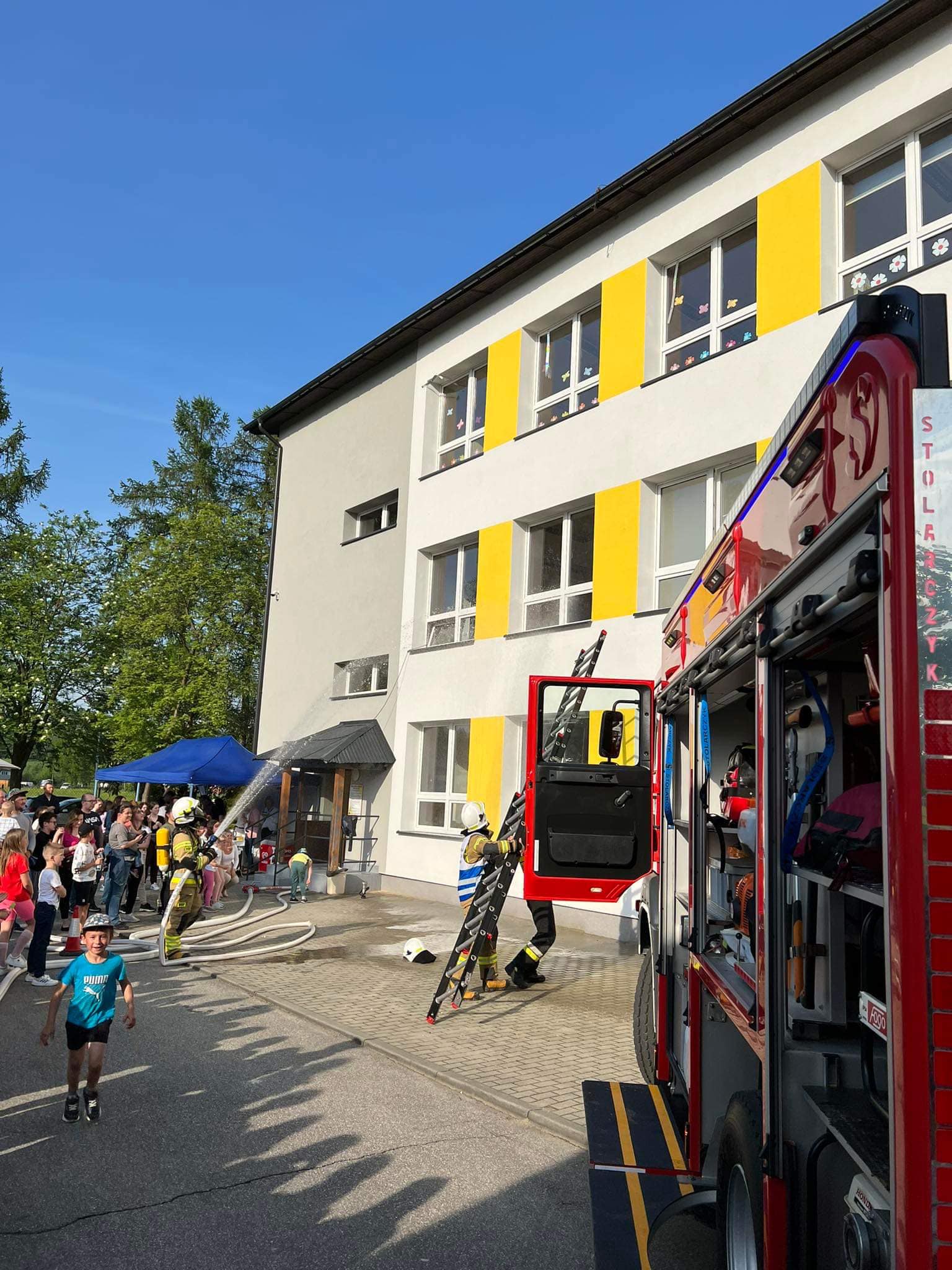 Na sam koniec dziecki trochę zmokły ponieważ zaprezentowałyśmy armaturę wodną na wyposażeniu naszego MANa.