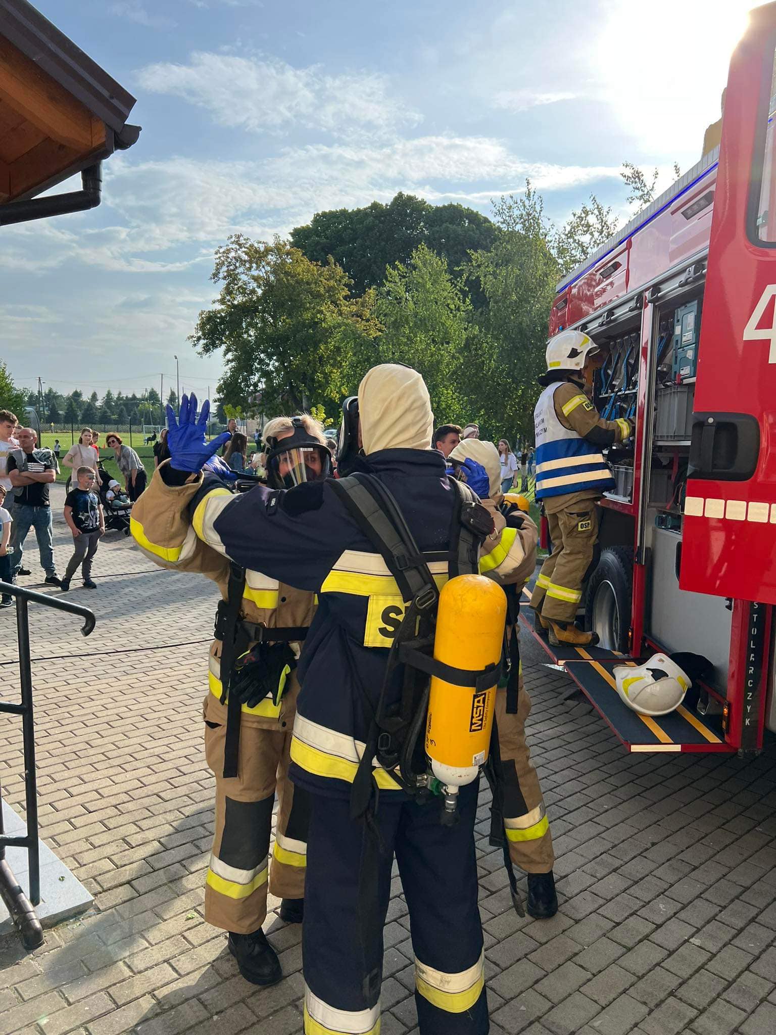 Następnie dzieci jak i dorodzli mogli obejrzeć i zobaczyć z bliska sprzęt jaki jest wykorzystywany w dniu codziennym przez naszych strażaków podczas prowadzenia działań ratowniczo-gaśniczych.