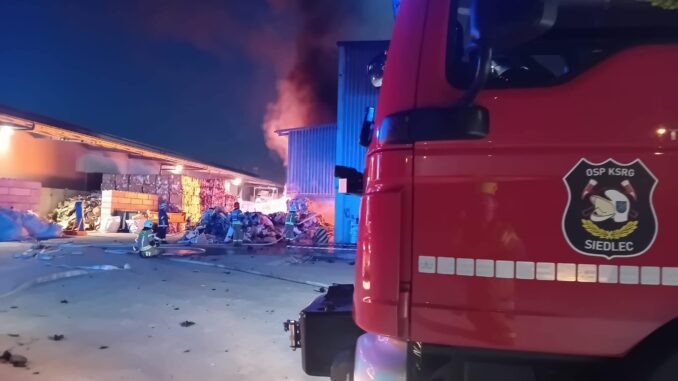 12.08.2025 spokojny sen naszych druhów przerwał dźwięk syreny. Nasza jednostka została zadysponowana przez SKKP w Bochni do pożaru, który wybuchł na jednej z firmy przemysłowych, przetwarzających odpady. Do pożaru doszło w jednej z hal gdzie znajdowały się przywiezione śmieci. Według zgłoszenia nad firmą unoszą się kłęby czarnego dymu. Nie zwłocznej przystąpiono do wysyłania licznych sił i środków ochrony przeciwpożarowej. Według rozpoznania przeprowadzonego przez pierwsze zastępy, które dojechały na miejsce stwierdzono pożar hali wraz z odpadami. Ogień obejmował całą powierzchnię hali o wymiarach 63mx36m. Proces jak i cały przebieg akcji gaśniczej był koordynowany za pomocą bezzałogowych statków powietrznych typu dron.